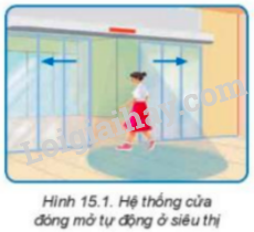 Hãy quan sát và mô tả sự vận hành của hệ thống cửa đóng mở tự động ở Hình 15.1.