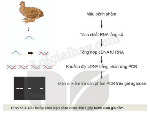 Quan sát Hình 15.3 và mô tả quy trình phát hiện sớm virus H5N1 gây bệnh cúm ở gia cầm.