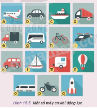 Hãy quan sát và sắp xếp các máy cơ khí động lực trong Hình 15.5 theo các nhóm sau: