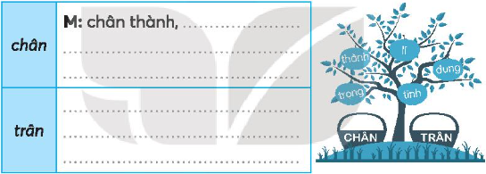 Ghép các tiếng phù hợp với chân hoặc trân để tạo từ.