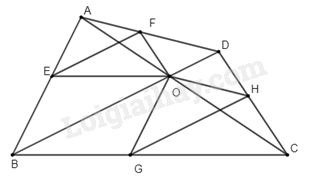 Cho tứ giác \(ABCD\) có \(AC\) và \(BD\) cắt nhau tại . Qua \(O\), kẻ đường thẳng song song với \(BC\) cắt \(AB\) tại \(E\), kẻ đường thẳng song song với \(CD\) cắt \(AD\) tại \(F\).
