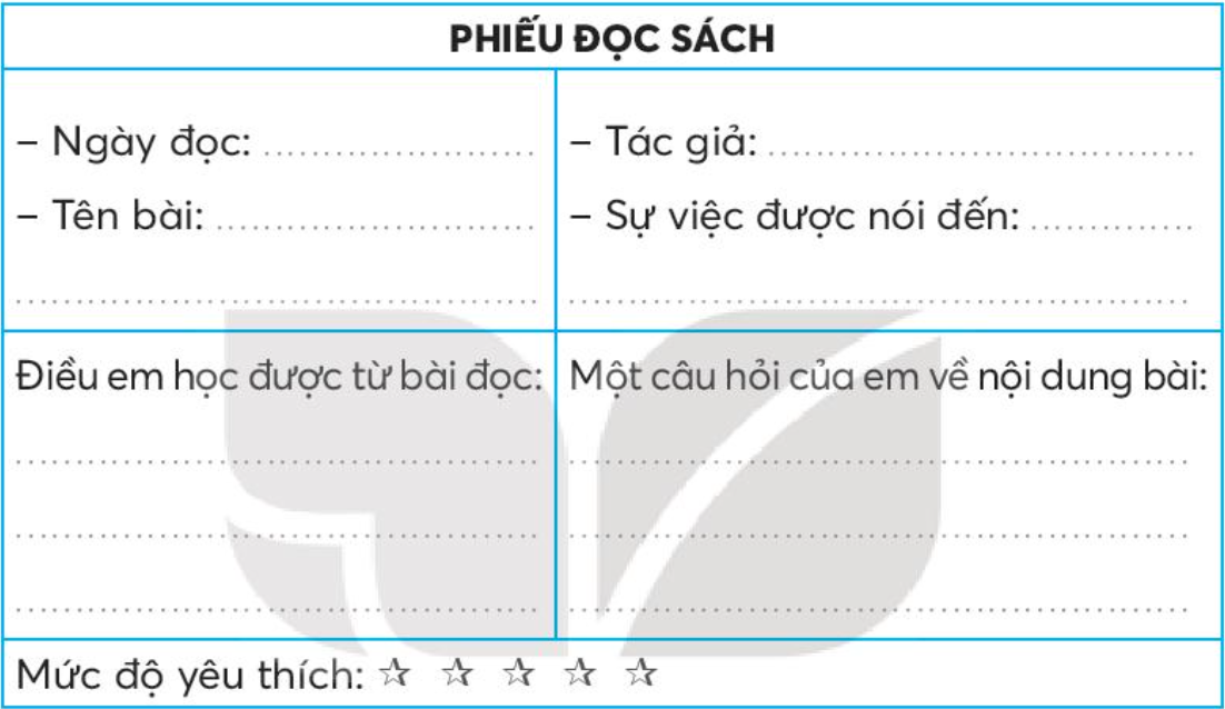 Đọc câu chuyện, bài văn, bài thơ,... về bài học ứng xử, cách giao tiếp với những người xung quanh và viết thông tin vào phiếu đọc sách.