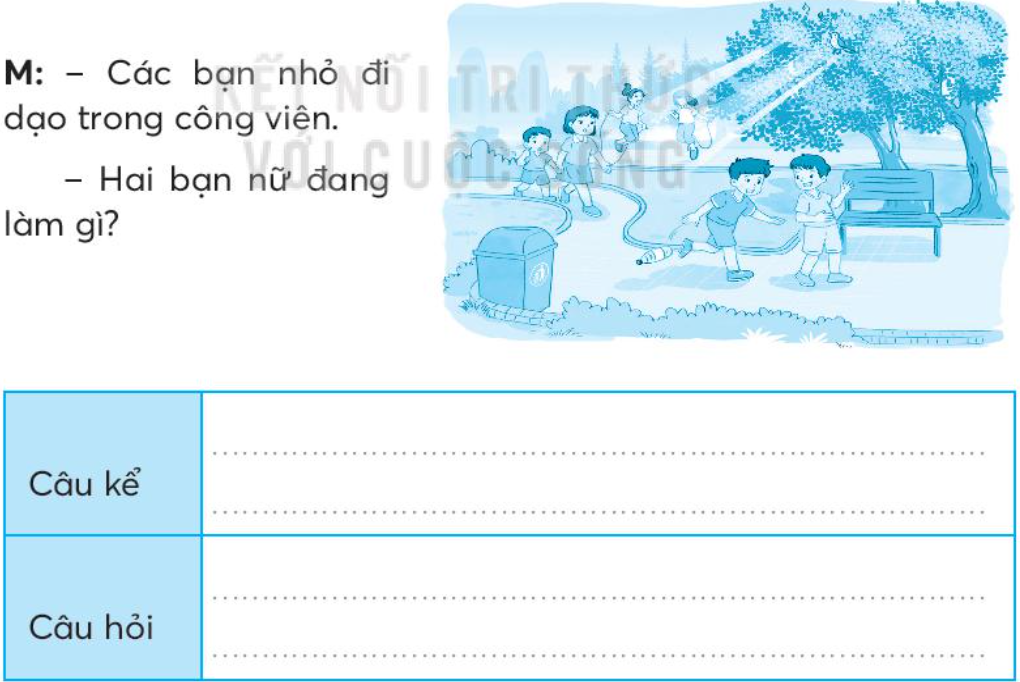 Nhìn tranh, đặt 2 câu kể, 2 câu hỏi.