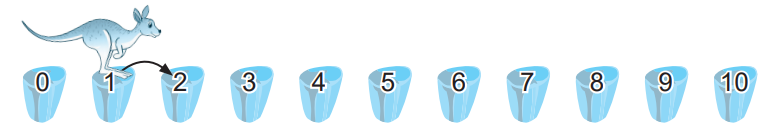 Một cây cầu đá có 11 tảng đá. Chú chuột túi đang ở tảng đá ghi số 1 (như hình vẽ). Mỗi lần nhảy, chuột túi sẽ nhảy từ một tảng đá sang tảng đá ghi số liền sau nó. Vậy: