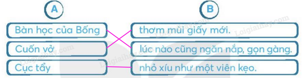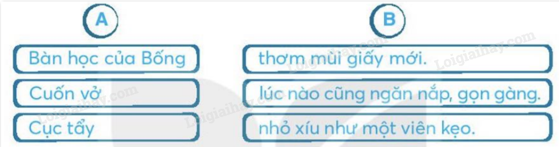 Em đọc kĩ các từ ngữ chỉ sự vật ở cột A và từ ngữ chỉ đặc điểm ở cột B để nối thành câu thích hợp.