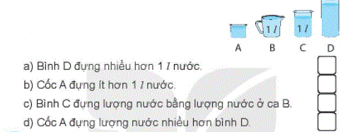a) Lượng nước ở bình A là ..... cốc. Lượng nước ở bình B là ...... cốc.