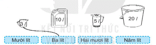 b) Trong các đồ vật ở câu a: Tô màu đỏ vào đồ vật chứa được nhiều nước nhất, màu xanh vào đồ vật chứa được ít nước nhất.
