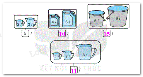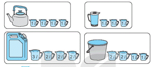 Mỗi đồ vật đựng số lít nước ứng với các ca nước bên cạnh (như hình vẽ).