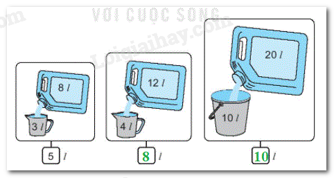 Tính theo công thức: Số lít nước còn lại = Số lít nước trong can – Số lít nước rót ra.