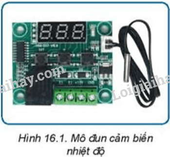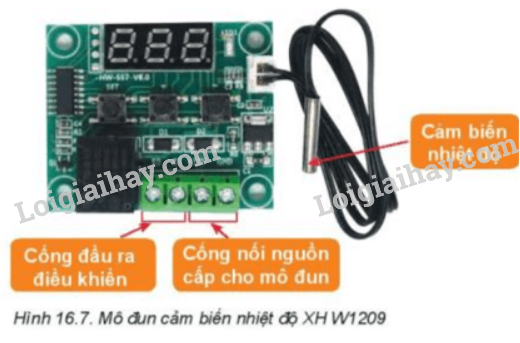 Quan sát Hình 16.7, xác định vị trí cổng đầu vào nguồn cấp và cổng đầu ra điều khiển của mô đun cảm biến nhiệt độ.