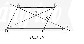 Cho hình bình hành \(ABCD\). Đường thẳng \(a\) đi qua \(A\) cắt \(BD,BC,DC\) lần lượt tại \(E,K,G\) (Hình 10). Chứng minh rằng: