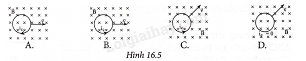 Trường hợp nào trong Hình 16.5 là đúng khi cho vòng dây tịnh tiến với vận tốc \({\rm{\vec v}}\) trong từ trường đều?