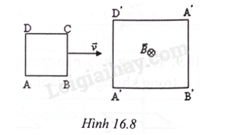 Một khung dây kín phẳng hình vuông ABCD có cạnh a = 10 cm gồm N = 250 vòng. Khung chuyển động thẳng đều tiến lại khoảng không gian trong đó có từ trường. Trong khi chuyển động cạnh AB và DC luôn nằm trên hai đường thẳng song song (Hình 16.8). Tính cường độ dòng điện chạy trong khung trong khoảng thời gian từ khi cạnh CB của khung bắt đầu gặp từ trường đến khi khung vừa vặn nằm hẳn trong từ trường. Chỉ rõ chiều dòng điện trong khung. Cho biết điện trở của khung là 3 Ω. Tốc độ của khung v = 1,5 m/s và cảm ứng từ của từ trường B = 0,005 T.