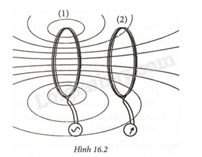 Đặt hai cuộn dây dẫn kín cạnh nhau như Hình 16.2. Một cuộn nối với nguồn điện. Một cuộn nối với điện kế, khi không có dòng điện chạy trong cuộn dây thì kim điện kế chỉ vạch số 0.