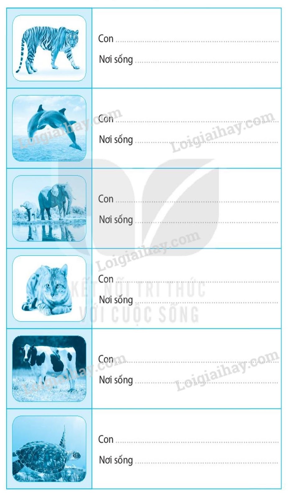 Viết tên con vật và nơi sống của chúng vào chỗ (…).