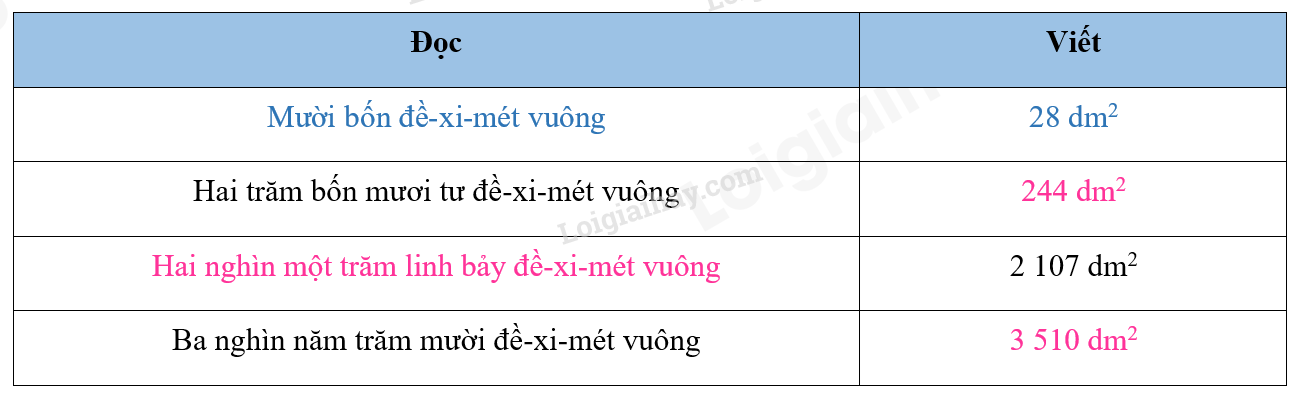 Để đọc (hoặc viết) số đo diện tích ta đọc (hoặc viết) số trước sau đó đọc tên của kí hiệu đơn vị đo diện tích đó.
