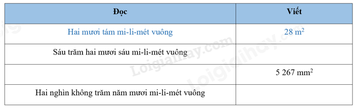 Dựa vào cách chuyển đổi: 1cm2 = 100 mm2