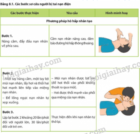 HS thực hành sơ cứu người bị tai nạn điện giật theo thứ tự các bước sau: