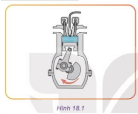 Em hãy quan sát Hình 18.1 và cho biết nếu trục khuỷu quay theo chiều mũi tên, pít tông sẽ chuyển động lên trên hay xuống dưới; thể tích, nhiệt độ và áp suất phía trên đỉnh pít tông (phần tô màu xanh) thay đổi như thế nào?