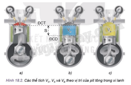 Quan sát Hình 18.2 và cho biết hình nào có đỉnh pít tông xa tâm trục khuỷu nhất và hình nào có đỉnh pít tông gân tâm trục khuỷu nhất?