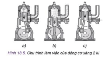 Hình a: pit tông đi xuống, cửa thải và cửa quét đóng, khí cháy đẩy phit tông đi xuống.