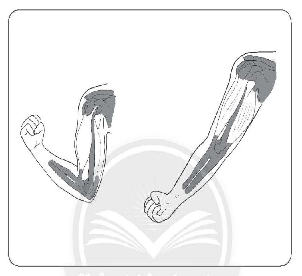 Khi co tay lại, các cơ săn chắc lại, phồng to lên.