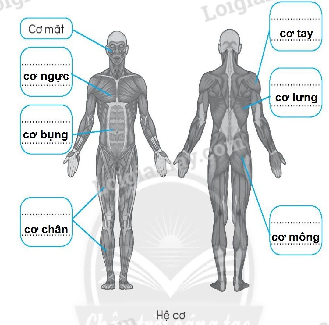 Viết tên cơ vào chỗ (…) sao cho phù hợp với vị trí trong hình (theo mẫu).