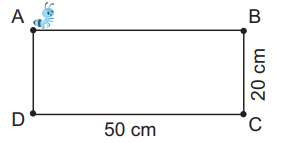 Cho ABCD là hình chữ nhật có BC = 20 cm, CD = 50 cm. Một con kiến đang ở điểm A (như hình vẽ).