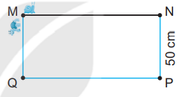 Rùa và Ốc sên thi chạy. Hai bạn cùng xuất phát từ điểm M chạy đến đích ở điểm N nhưng theo hai đường khác nhau. Ốc sên chạy đến đích theo cạnh MN, còn Rùa chạy đến đích theo đường gấp khúc MQPN. Biết rằng MQPN là hình chữ nhật có NP = 50 cm