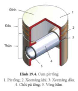 Quan sát hình 19.4 và cho biết cấu tạo của pittong, vai trò của đỉnh, dầu và thân của pittong?