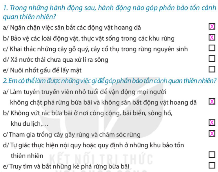 - Những việc em đã làm để góp phần bảo tồn cảnh quan thiên nhiên