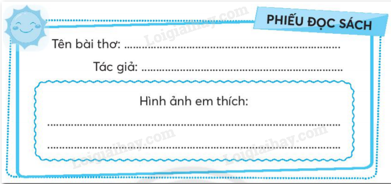 Em lựa chọn 1 bài thơ về gia đình mà mình đã đọc và điền các thông tin vào phiếu đọc sách.
