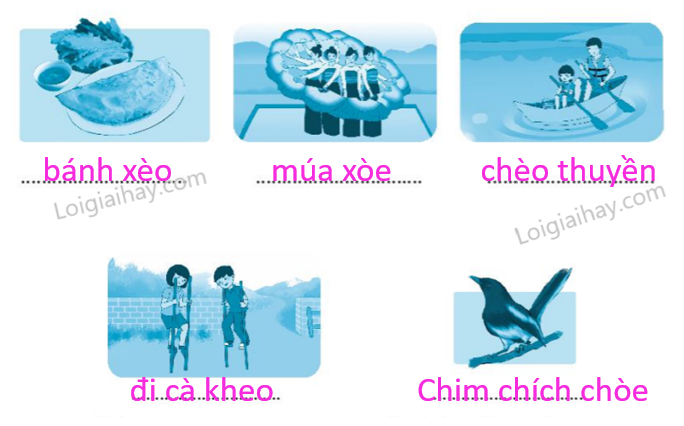 Viết 2 từ ngữ chứa tiếng có vần eo hoặc vần oe gọi tên từng sự vật, hoạt động dưới đây:
