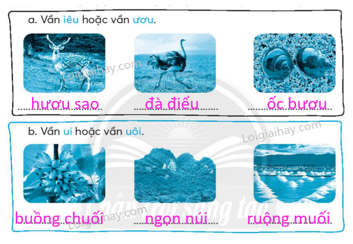 Viết từ ngữ gọi tên từng sự vật dưới đây chứa tiếng có: