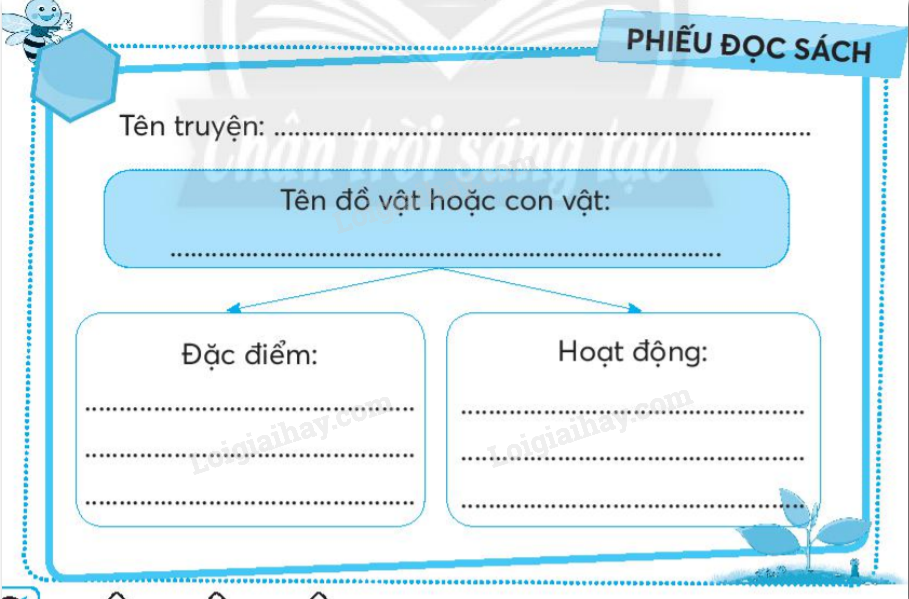 Viết vào Phiếu đọc sách những điều em đã chia sẻ với bạn sau khi đọc một truyện về đồ vật hoặc con vật.