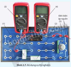 • Lắp đặt dụng cụ thí nghiệm theo sơ đồ mạch điện ở Hình 2.6, đặt đầu ra của biến áp nguồn ở điện áp một chiều.