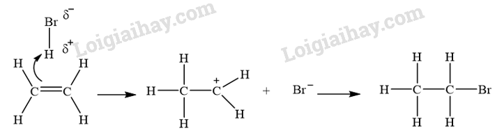 - Cơ chế phản ứng khi cho ethylene tác dụng với HBr: