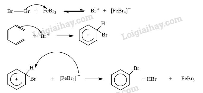 Cơ chế phản ứng khi cho benzene tác dụng với Br2, xúc tác FeBr3: