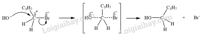 Phản ứng thủy phân 1-bromobutane bằng dung dịch NaOH xảy ra theo cơ chế thế nucleophile SN2: