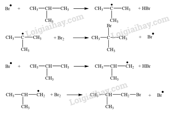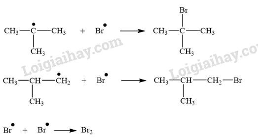 - Các gốc tự do tạo thành khi cho propane tác dụng với bromine tạo thành dẫn xuất monobroma: