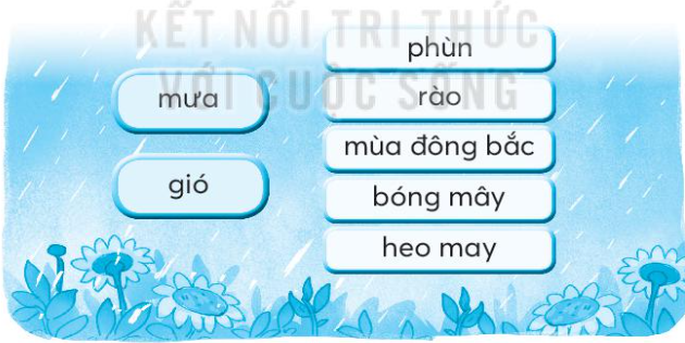 Nối các thẻ chữ để gọi tên các loại mưa và gió. Viết lại những từ ngữ em tìm được.