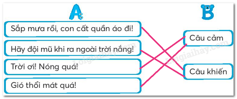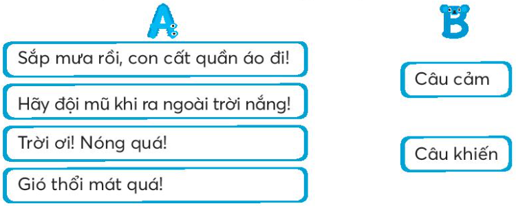 Nối câu ở cột A với kiểu câu thích hợp ở cột B.