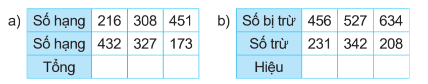 b) Muốn tìm hiệu ta lấy số bị trừ trừ đi số trừ