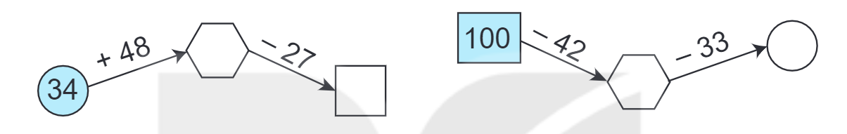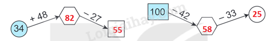 Thực hiện các phép tính theo chiều mũi tên rồi điền kết quả vào ô trống.
