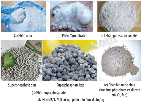 Dựa vào kiến thức về thành phần của phân bón và hình 2.1, 2.2 trong sách chuyên đề