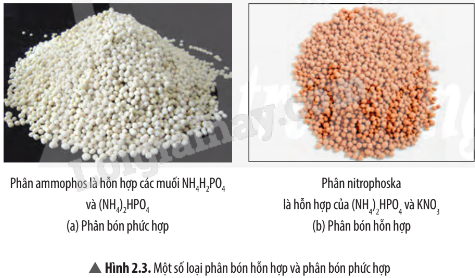 Từ các hợp chất có trong các loại phân ở Hình 2.3, cho biết các loại phân bón này cung cấp nguyên tố dinh dưỡng nào cho cây trồng