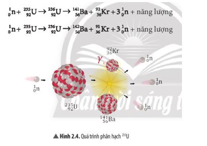 Quan sát Hình 2.4 và Ví dụ 1, hãy so sánh số khối của các mảnh phân hạch với số khối của hạt nhân ban đầu.