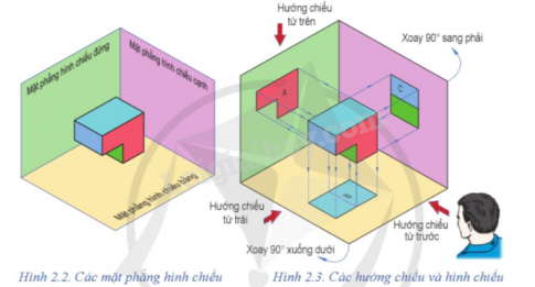 Quan sát hình 2.4 để xác định các hình chiếu vuông góc.