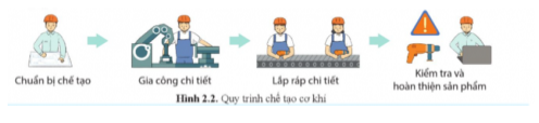 Quan sát hình 2.2 và kể tên các bước cơ bản của quy trình chế tạo cơ khí.