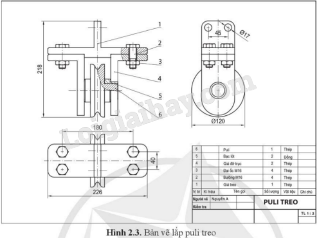 -Nghiên cứu bản vẽ lắp sản phẩm puli treo ở hình 2.3 để xác định số lượng chi tiết cầu thành nên sản phẩm cũng như mối quan hệ lắp ghép giữa các chi tiết.